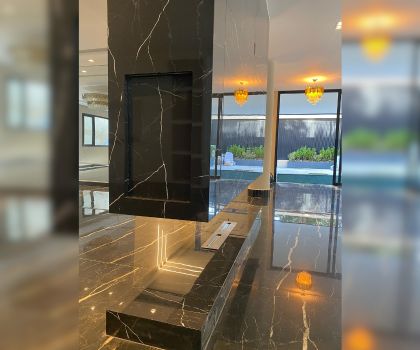 Superfície ultracompacta de alta resistência, ideal para bancadas, pisos e revestimentos, unindo durabilidade e sofisticação.
