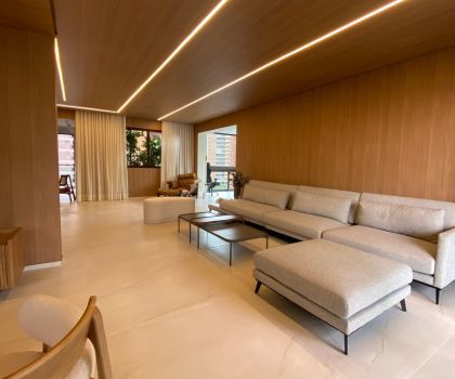 Projeto em apartamento com acabamentos elegantes e design moderno, focado em conforto e sofisticação.