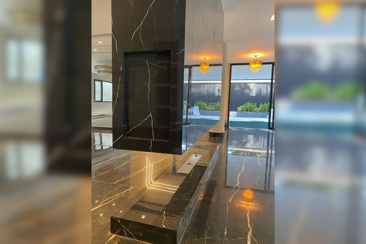 Superfície ultracompacta de alta resistência, ideal para bancadas, pisos e revestimentos, unindo durabilidade e sofisticação.