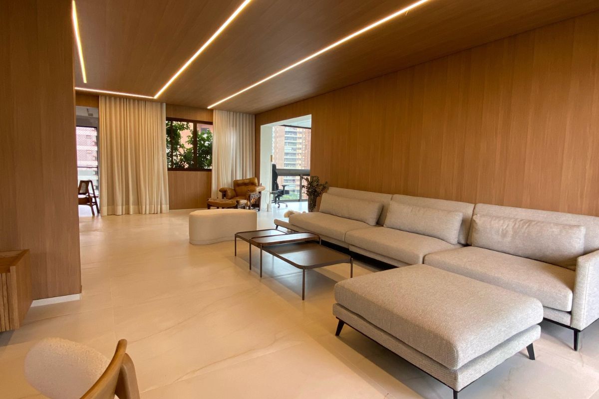 Projeto em apartamento com acabamentos elegantes e design moderno, focado em conforto e sofisticação.